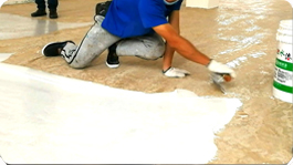具有更優(yōu)良的附著力及滲透性更易施工,砂漿中涂厚涂都不發(fā)軟,高光澤度高耐磨,亮度可達72度,叉車碾壓無變形,耐水泡30天不泛白;
